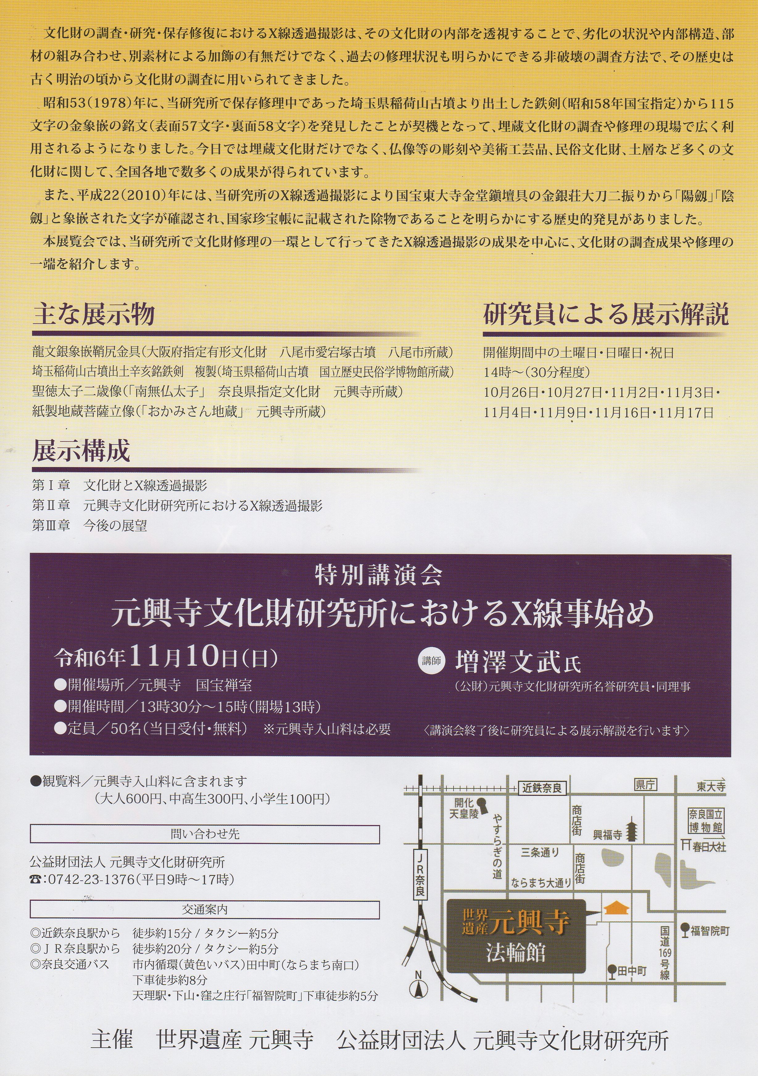 問い合わせ先 0742-23-1376(元興寺文化財研究所)9時~17時まで
