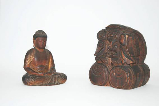 (左)阿弥陀如来座像 (右)一刀彫大黒天像 (いずれも個人蔵)